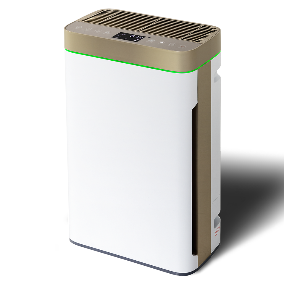 Alle Staubpartikel werden mit einem mehrstufigen Filtersystem entfernt. Belastungsanzeige für Luftpartikel zeigt die Luftbelastung im Raum an.